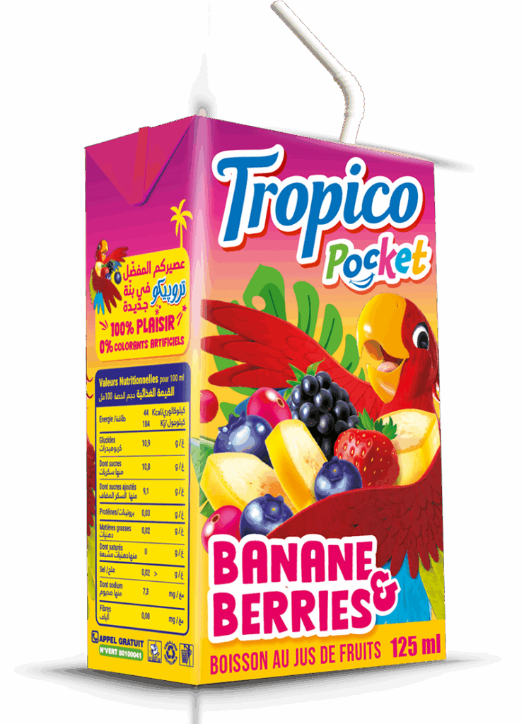 Leader du marché tunisien des jus petit format, la marque enrichit sa gamme avec le Tropico Pocket – Berries & Banane (125 ml), une version pratique et gourmande pour tous les instants de plaisir.